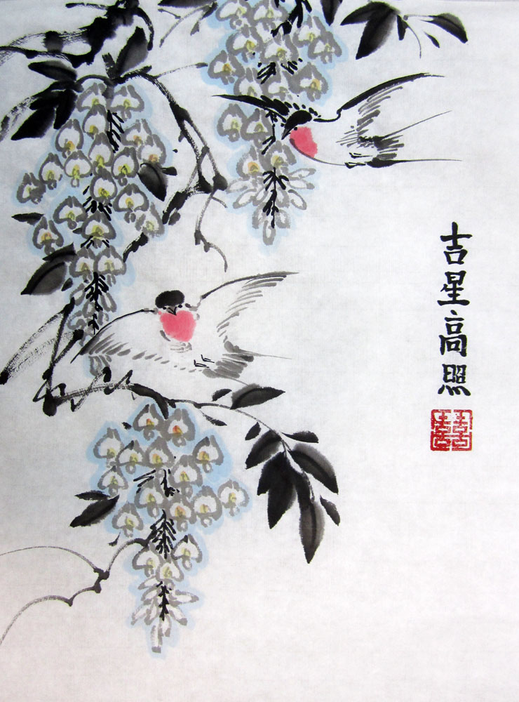 Живопись цветов, ранее связанная главным образом с буддийским искусством, вступила в свои права как отдельная отрасль живописи в период пяти династиях (907-960). Наряду с изображениями цветов стали писать птиц.