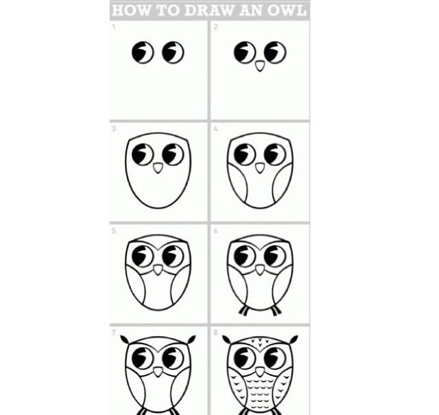 Как нарисовать сову поэтапно с помощью картинок