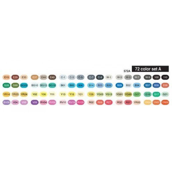 шесть маркерных кистей Copic и 72 цвета из Copic Color System на