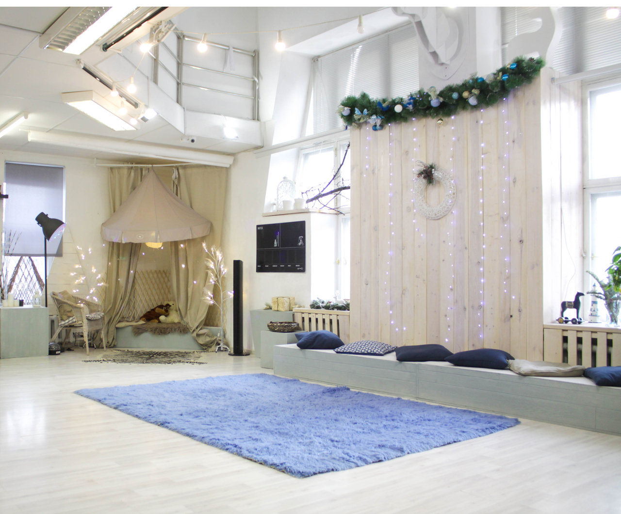 Интерьерная белая лофт-фотостудия площадью 160 кв.м. Это неограниченное пространство для: