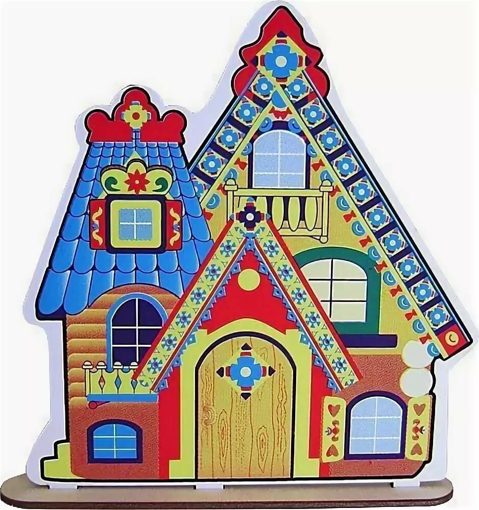 Какие средства художник использует для передачи облика сказочного домика ? (Узор, цвет, форма строения.)