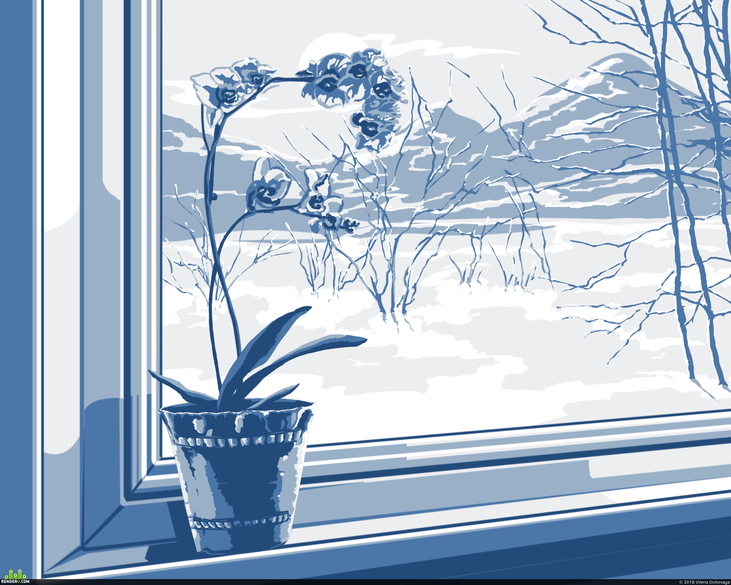 Оказывается, водой! Прозрачным водяным паром, который всегда есть в воздухе. Есть он и в комнате. И между двойными рамами окон – всюду! Теплые пары воды оседают на холодных стёклах окон и превращаются в кристаллы льда, так же как снежинки в небесной вышине.