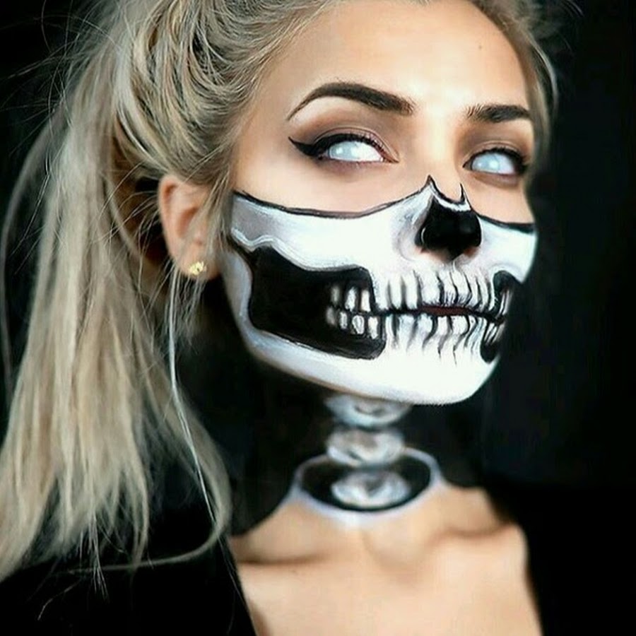 Прежде чем начать, попробуйте оценить свою способность выполнять тот или иной макияж. Заранее вооружитесь необходимыми средствами для макияжа. Вы можете выделить только часть лица или же сделать всё лицо похожим на череп. Эксклюзивным образом на Хэллоуин остаётся макияж Санта Муэрте (Santa Muerte — Святая Смерть), богини смерти (современный религиозный культ родом из Мексики). Характерные завитушки, контрастные цвета и дополнение макияжа венком на голове из крупных цветов помогут вам создать подобный образ.