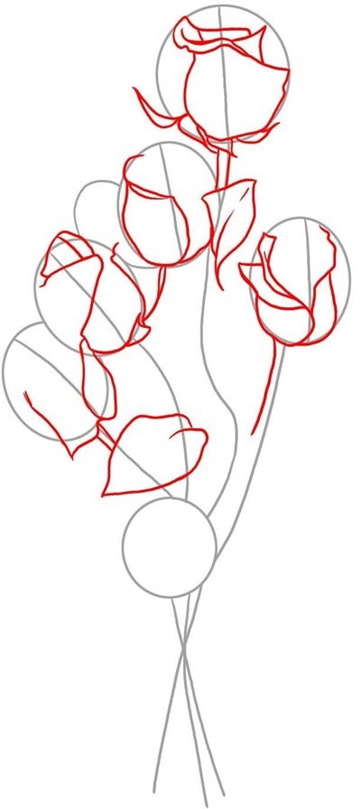 Независимо от того, из каких цветов будет состоять букет, первые этапы рисования должны быть одинаковыми:
