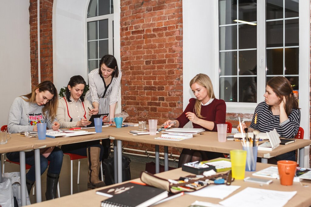 Курсы школы делятся по уровням и дисциплинам. Есть занятия для новичков. Для тех, кто вообще не знает чего он толком хочет, но чувствует, что душа требует творчества. Там мы рассказываем основы, про то, что бывает в принципе. Есть курсы для тех, кто уже имеет базовый уровень, курсы для дизайнеров и иллюстраторов. Есть онлайн-обучение и вебинары.
