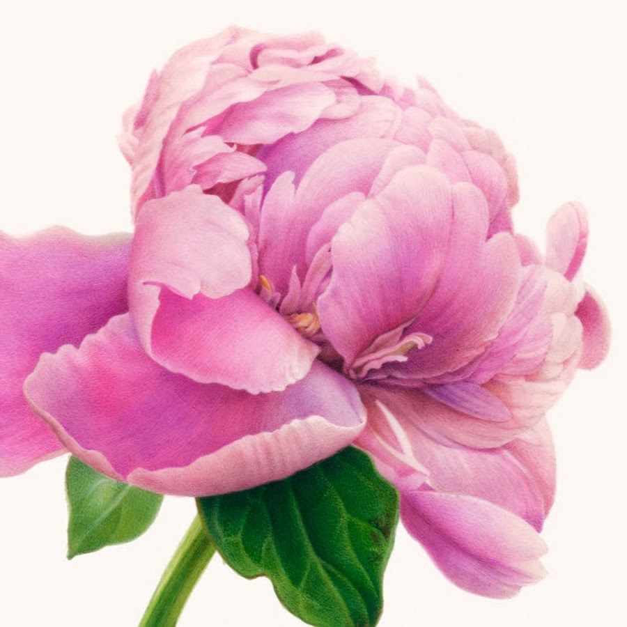 Я повторяю этот процесс над той же областью, пока он не станет настолько темным, насколько я хочу, чтобы фон был, прежде чем двигаться дальше. Я часто заново затачиваю карандаш, чтобы всегда иметь кончик, который может полностью покрыть бумагу и не пропускать волокна, как тупой кончик карандаша. Чтобы дать вам пример того, как часто я затачиваю свой карандаш, на темном фоне вокруг пиона на этом маленьком квадратном рисунке размером 4,75 дюйма использовалась примерно половина моего карандаша 9B.