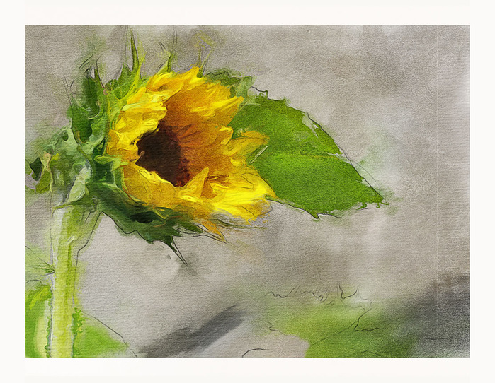Подсолнух и листья выглядят светлее, когда я добавляю фону более глубокие цвета. Это показывает необходимость подталкивать различные компоненты картины, чтобы проверить сомнительные области.