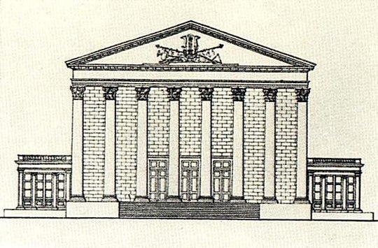 Из верхней линии с левой стороны схематично нарисовать 6-8 деревьев, стоящих вплотную друг к другу.