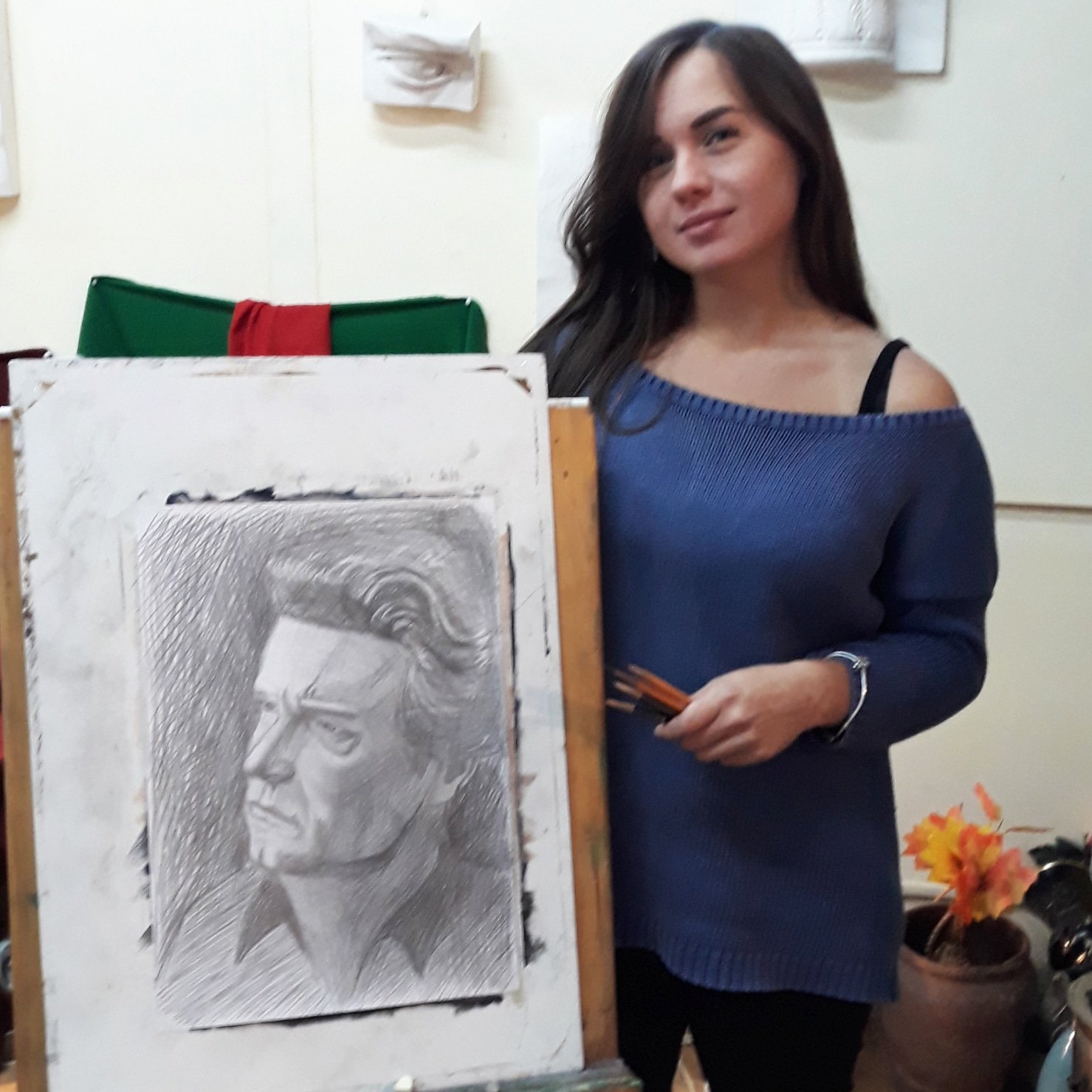 Как научиться рисовать портрет? Как нарисовать человека похожим? На наших Курсах Рисования портрета Вы узнаете всё о строении и пропорциях головы, индивидуальных особенностях каждого человека, о взаимосвязи композиции, материала исполнения(карандаш, соус, сепия, сангина, тушь, перо) и тех эмоций, которые вызывают у зрителей нарисованный портрет. Вы научитесь рисовать портрет! Постановка на курсах рисования портрета рассчитана на три занятия по два астрономических часа каждое. Специальный курс проходит по вторникам в 19 часов!