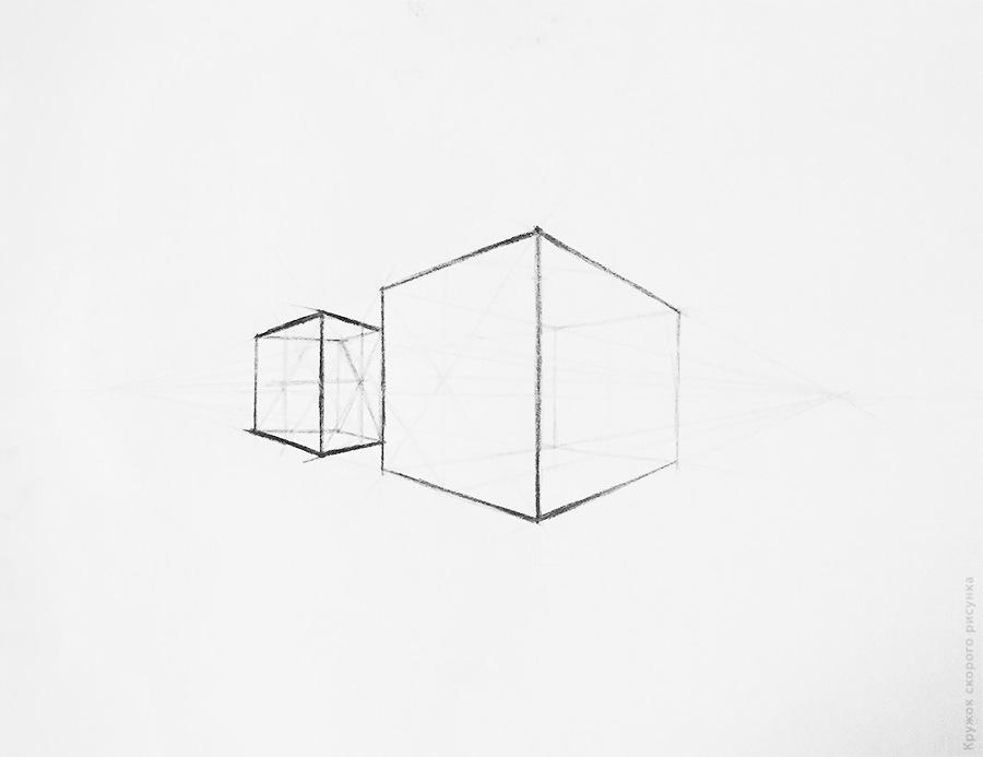 Когда я рисую, я постоянно перевожу свой взгляд на первый «основной» куб и добавляю новые линии.