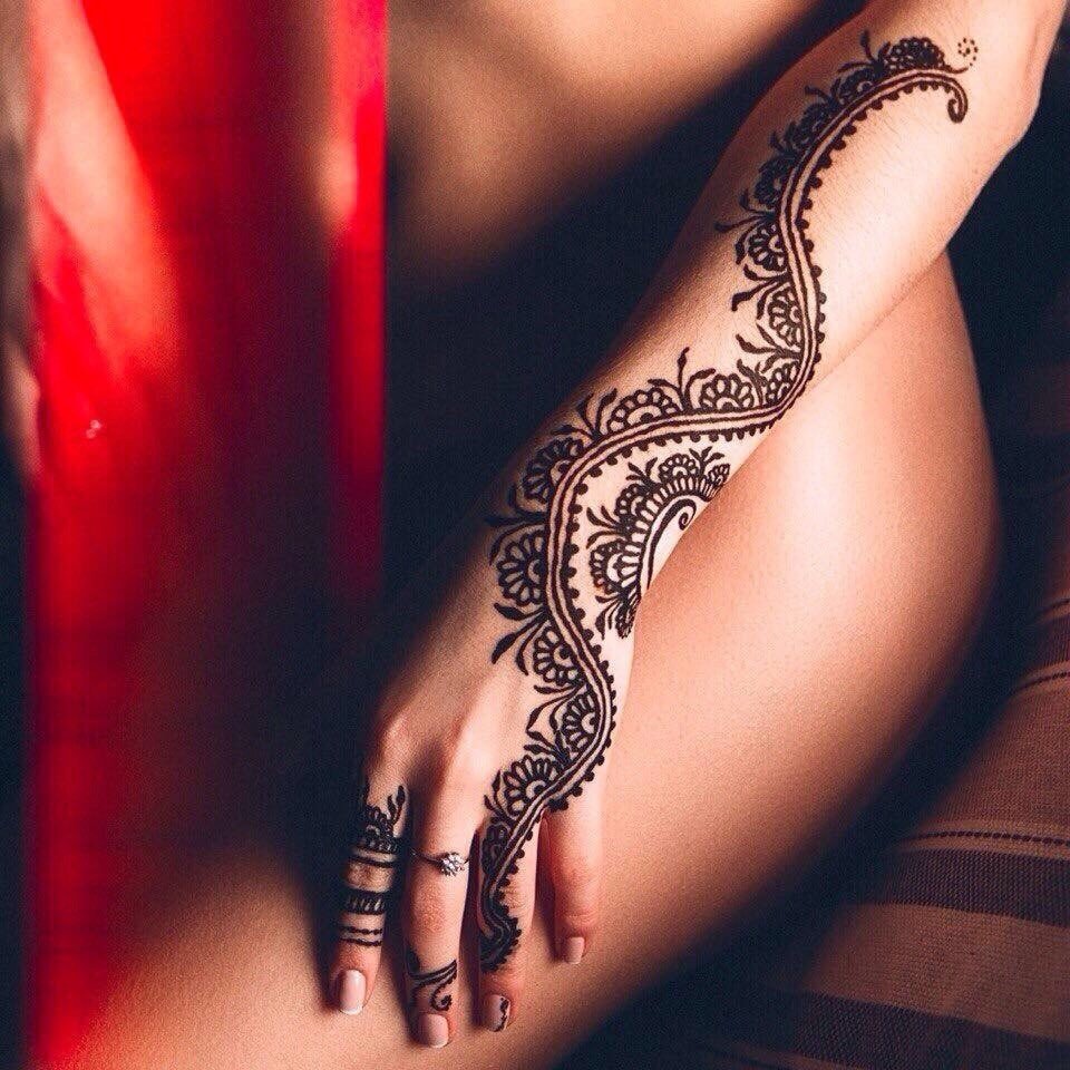 По сути, рисунок хной на теле — это действительно шифр — послание во Вселенную перед вступлением в новую семейную жизнь или после духовного преображения: цветы в росписи хной обещают принести благополучие, означают счастье и радость, виноградные лозы и листья символизируют преданность и жизненную силу, «огуречный» принт пейсли — символ жизни и плодородия.