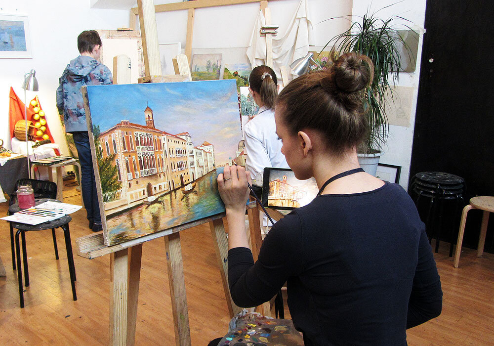 Легкой шелковой ткани соответствует тонкое лессировочное письмо, толстая шерстяная или ворсовая ткань потребует плотного пастозного мазка.