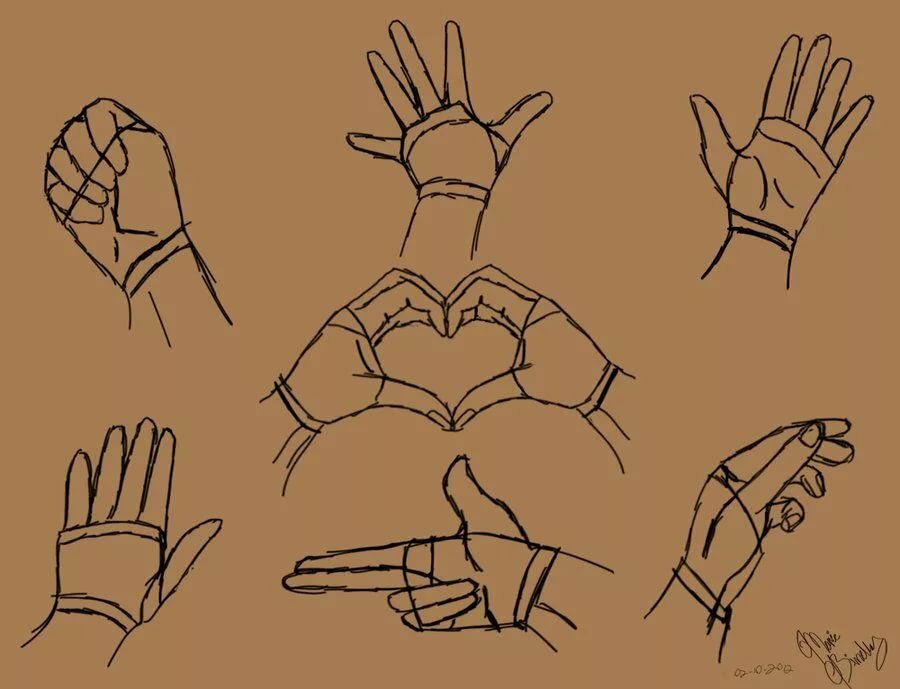Вот несколько набросков рук, дающих представление для стиля рисования именно реалистичных рук! Вы должны начать в любом стиле, опираясь на их реальный внешний вид.