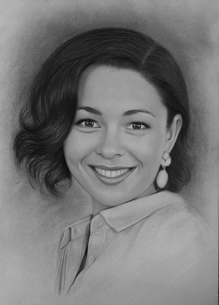 В целом, портрет девушки, созданный поэтапно карандашом, уже стал объемным изображением.
