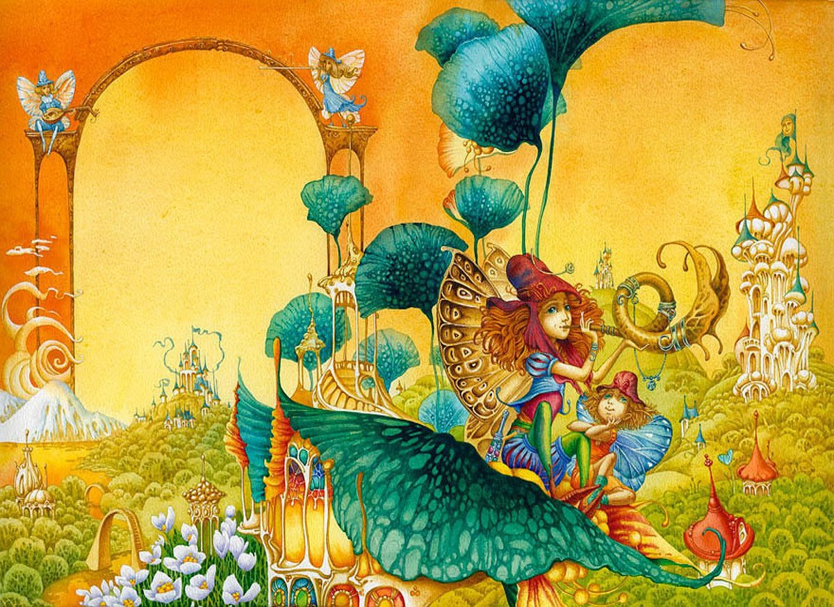 Литературной сказке и народной мудрой пословице одинаково доступны глубокое постижение необычных явлений жизни. Причудливый быт и романтическое настроение переплетены в заставках, виньетках и книжные миниатюрах, где фигурируют мрачные монахи и суровые алхимики наряду с поэтически-томными пастушками и простодушными детьми.