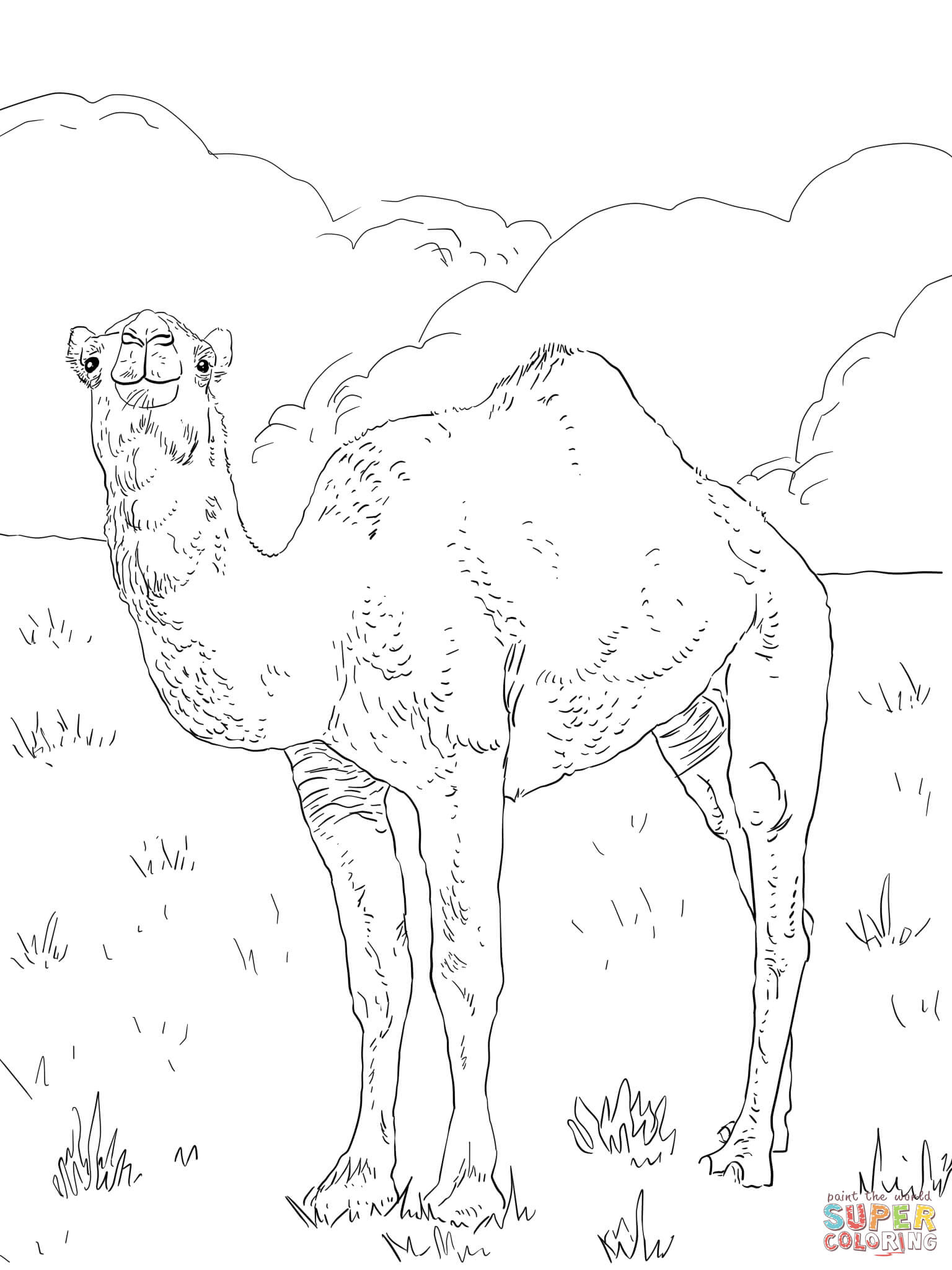 Нарисуйте длинный хвост и после этого можно начинать раскрашивать рисунок верблюда.