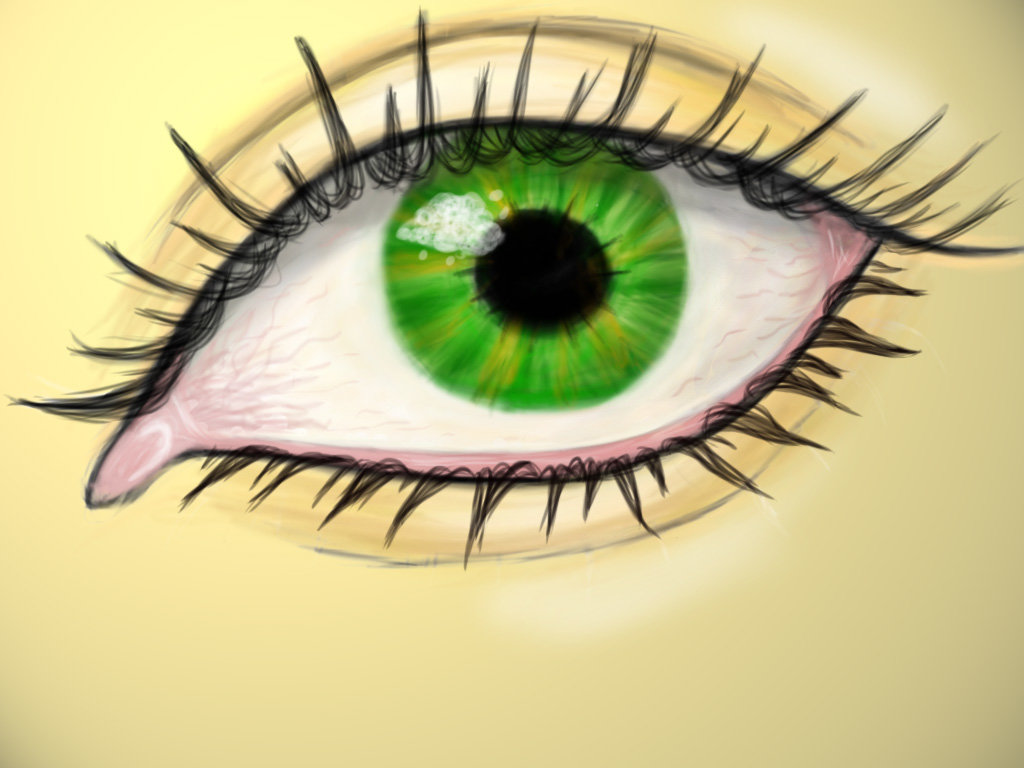 Создайте новый слой, очистите ненужные части белым цветом (лоб) и добавьте белую линию в качестве акцента.