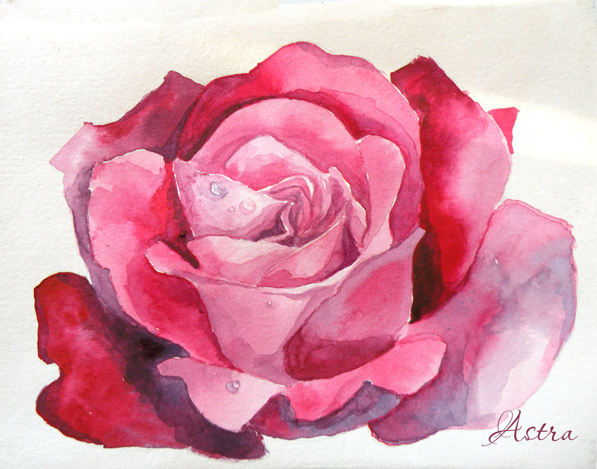 Когда я рисую розы, я обращаю внимание на прохладные и теплые участки лепестков. Если лепесток находится в тени, то эта область обычно создается в теплых тонах. Чтобы сделать эту область светящейся, я начну с желтого нижнего белья. В этом исследовании розовых роз я использовала ауреолин в качестве желтого средства для душа. Для своих розовых оттенков я использовал Permanent Rose. Для более теплых и темных участков я смешал Permanent Rose с Anthraquinoid Red. Но поскольку я работал с теневыми областями, я также использовал немного кобальтового синего для светлых участков в тени.Если вы внимательно посмотрите на мою незавершенную работу, то легко увидите, где я разместил желтый, а где синий. Чтобы нарисовать темные области в затененных областях, я затем добавил немного Sap Green к Permanent Rose / Anthraquinoid Red-Mix. Я уже упоминал, что я использовал Cobalt Blue, смешанный с Purple Magenta для своих более прохладных мест. Это помогает описать цветок и придать ему трехмерный вид. Когда я рисую цветы акварелью, я всегда работаю тонкими тонкими слоями и создаю цвета, добавляя все больше и больше цветов.