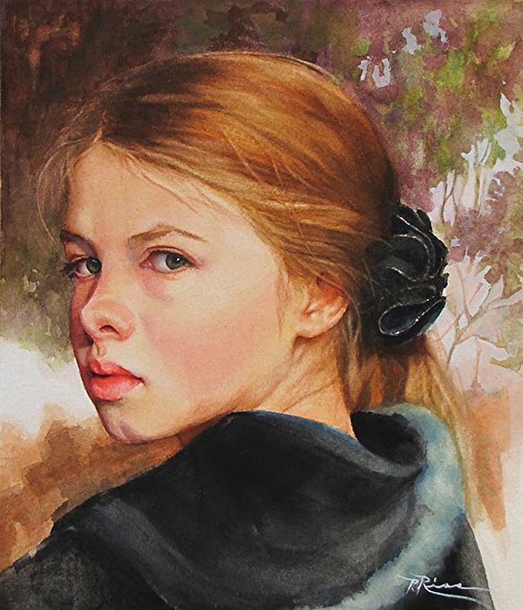 1. Как и в любой другой технике, портрет, написанный акварелью, может быть как точной копией изображаемого человека, с тщательно проработанным рисунком и обилием деталей, так и работой, выполненной в свободной и непринужденной манере.