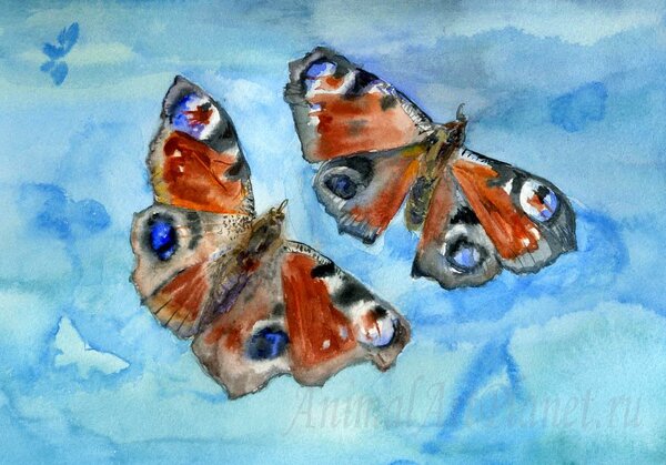КОБЫЛКА И МОТЫЛЕК, рисунки природы акварелью, 25х18 The mare and a butterfly (illustration to poetry), watercolor painting