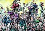 И желание даровано. Огромный монстр напуган. Ридделл, кстати, несмотря на любовь к мелким подробностям охотно рисует крупно. У него в альбомах для набросков огромные рисунки, очень смело закомпанованные. Я позже покажу.