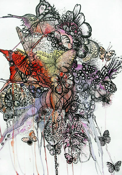 После этого вы приходите со своими чернилами и слегка рисуете желаемую форму поверх созданных вами цветных мазков.