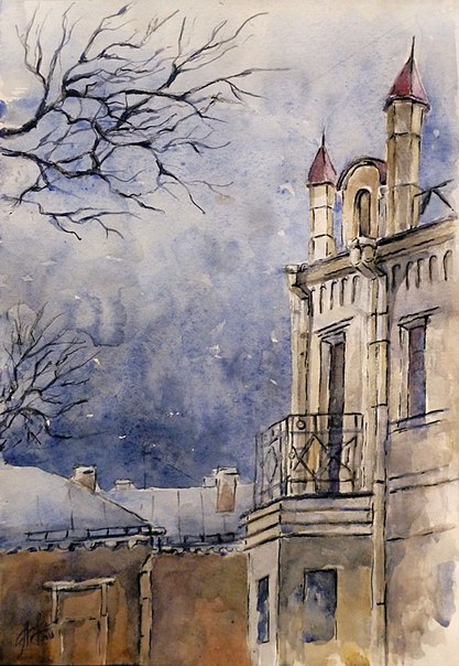 Некоторым людям нравится ходить в город с акварелью, прежде чем рисовать карандашом контур. Это тоже нормально.