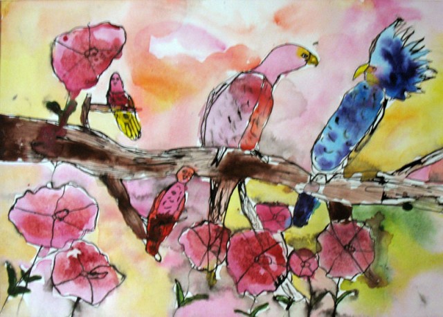 После того, как вы нарисовали свои формы или рисунки, пространство внутри линий теперь становится игровым полем. Здесь вы экспериментируете с разными акварельными красками и цветами в обозначенных местах.