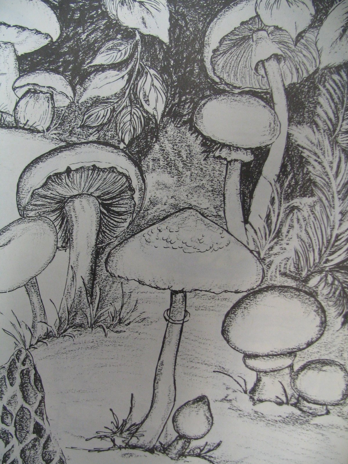 Воспитатель продолжает развивать композиционные умения, совершенствует навыки сюжетного рисования на темы окружающего мира и художественных произведений. При изучении темы «Грибы» закрепляются знания детей о многообразном мире грибов, продолжается знакомство с природой родного края, воспитывается бережное отношение к ней. Структурируются знания об их форме, строении и цвете, развивается чувство композиции и сюжетной линии рисунка, а также продолжается знакомство с нетрадиционными техниками рисования.