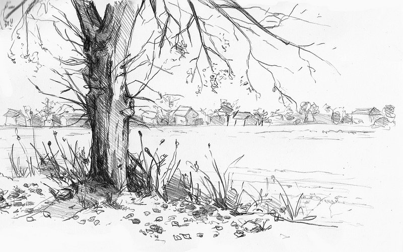 Когда рисуем архитектуру или просто сельский пейзаж — передайте настроение, (пасмурная погода, зима или лето). Постарайтесь передать перспективу. Очень важно не прорисовывать, здесь важно «ловить».
