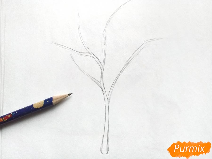 Поэтапное рисование дерева Готовый рисунок: зимнее дерево