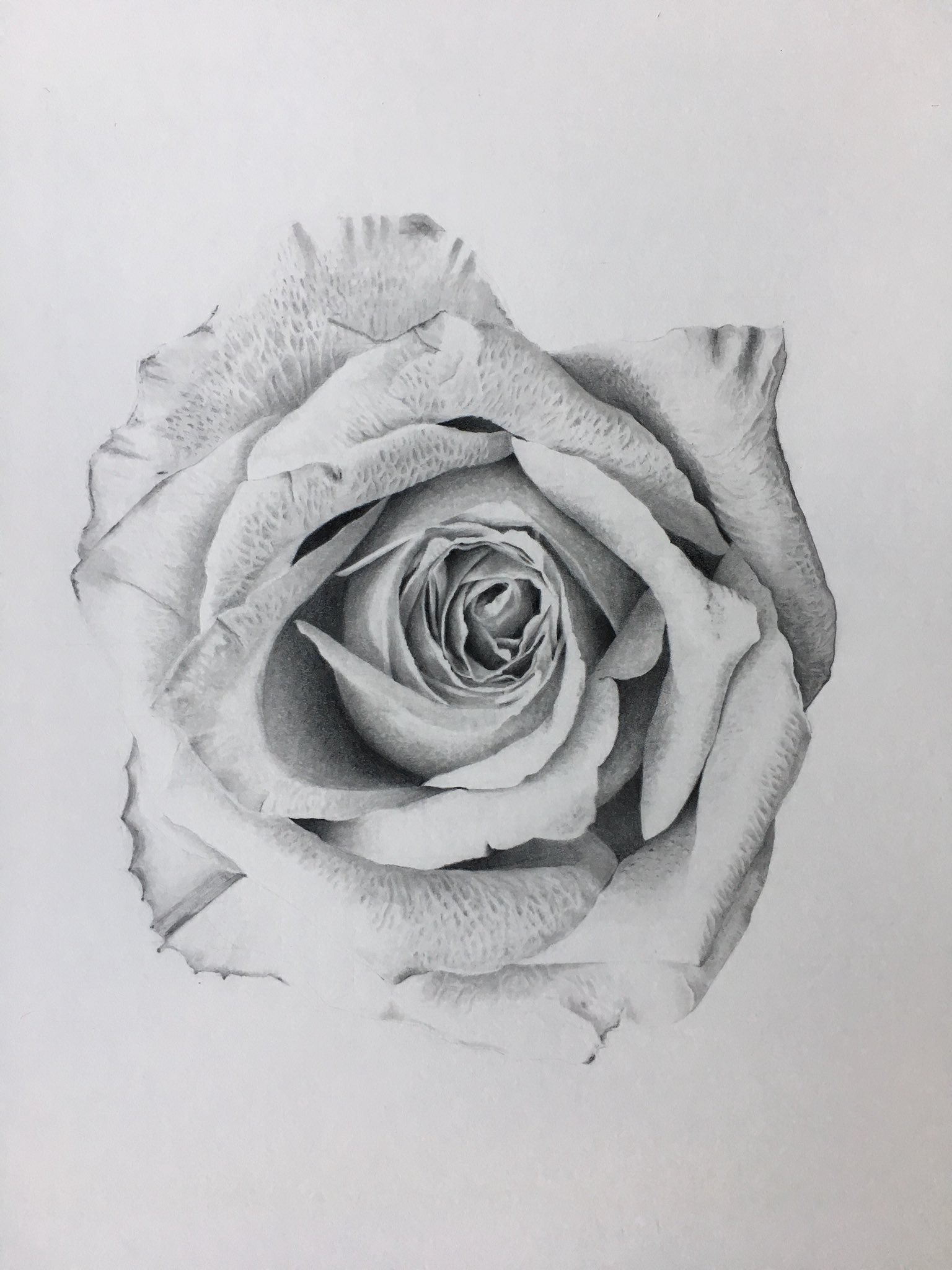 Если хотите, распечатайте изображение розы, чтобы использовать его в качестве образца для исходного рисунка или перенести на бумагу. Или нарисуйте его прямо на бумаге, используя изображение на экране компьютера в качестве ориентира. Держите изображение поблизости, чтобы точно запечатлеть формы и тени.