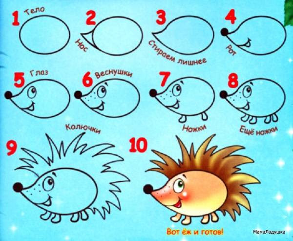 - Как научить ребенка рисовать ежика