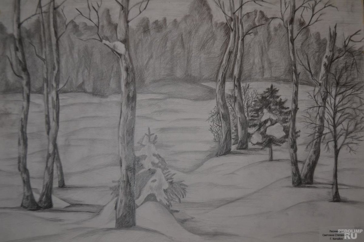 - Как нарисовать зимний пейзаж | Рисуем поэтапно карандашом