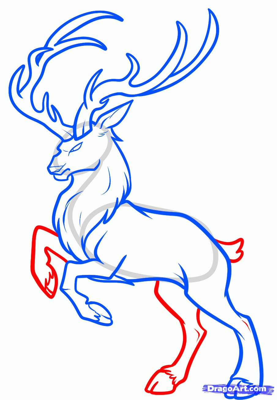 На финальном этапе стираем наброски и линии, раскрашиваем или заштриховываем шерсть оленя.