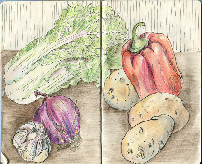 - Карандашный рисунок Овощи натюрморт