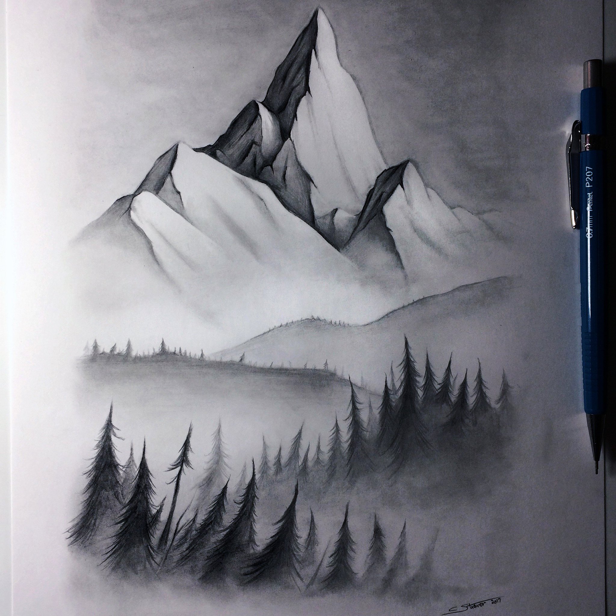 .., применяя карандаш с легким нажимом, красиво и даже художники помогают с горами.