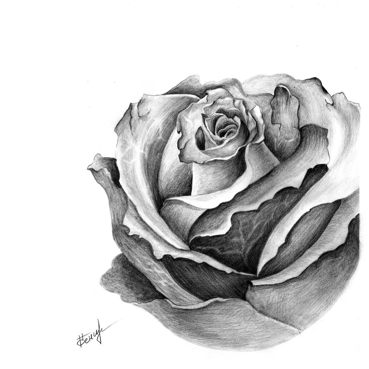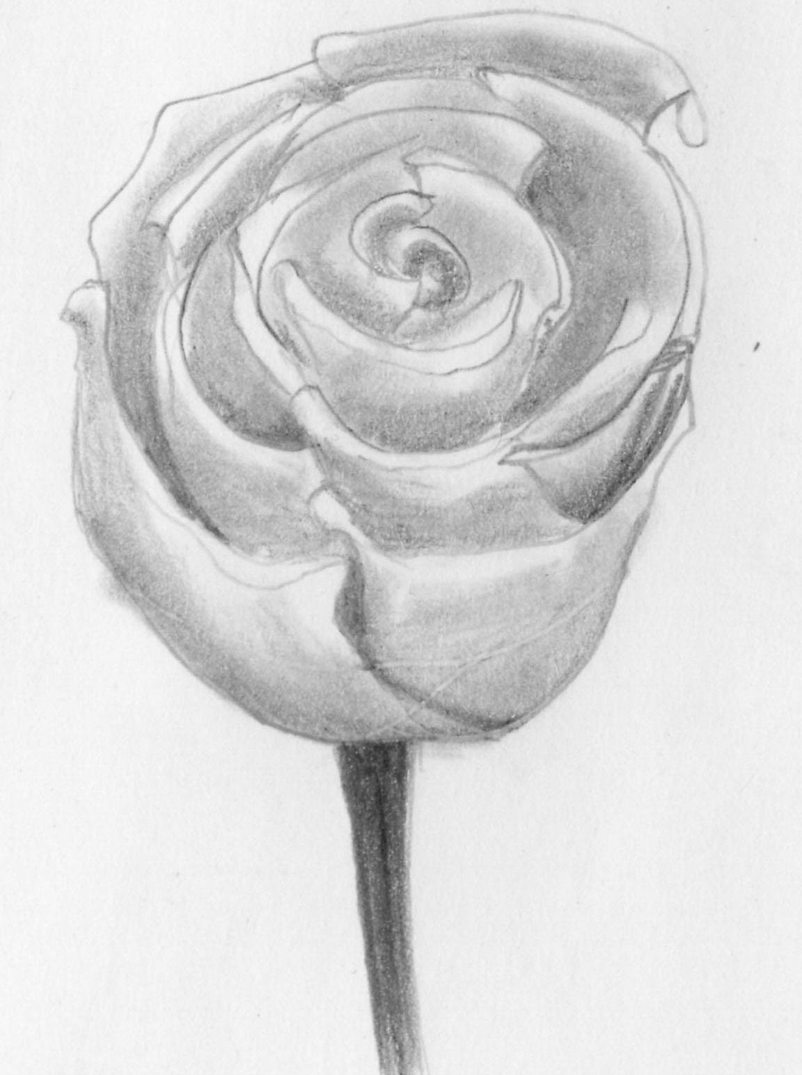 - Роза простым карандашом