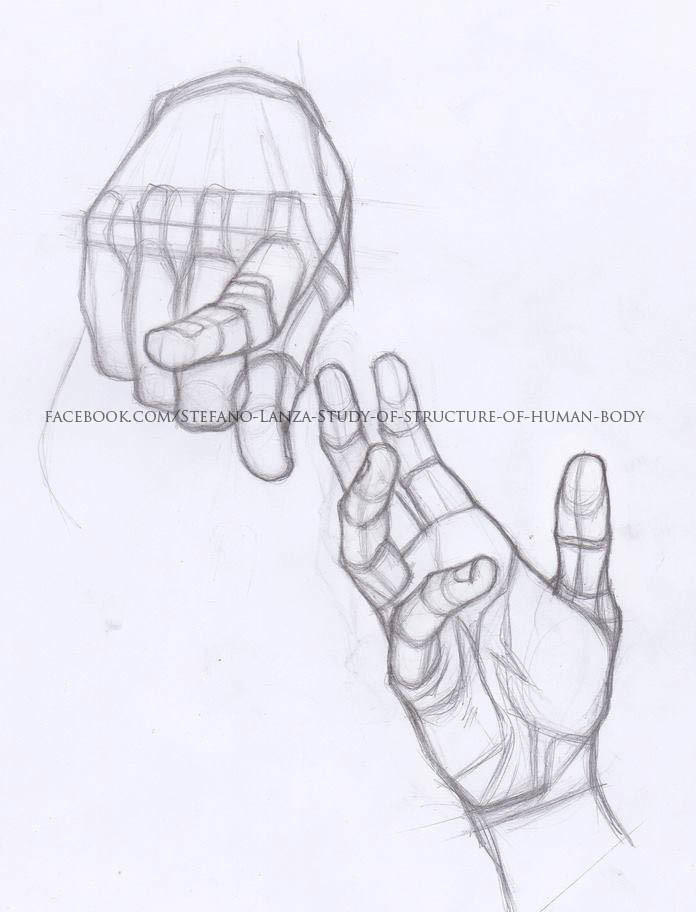 Обратите внимание на свои руки и увидите их в новом свете. Посмотрите, как рука автоматически принимает форму предмета перед тем, как схватить его. Чтобы изобразить руку, берущую объект, сначала нужно изучить контуры объекта, затем понаблюдать за автоматической подстройкой руки к этому контуру. Для начала возьмите мяч, грушу или персик и понаблюдай как ведут себя пальцы перед тем, как захватить предмет.