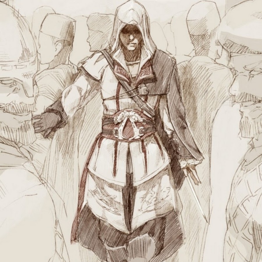 Они укреплены в специальном механизме, и в случае необходимости выдвигаются вдоль ладони. Прорисовываем дальше костюм как на рисунке.Шаг шестой. Добавим несколько деталей на костюме , согласно рисунка. Переходим к рисованию ног. Тут думаю особых сложностей не должно возникнуть. Шаг седьмой. Удаляем вспомогательные линии при помощи ластика и выделяем жирной линией контуры рисунка. Вот как у нас должно получиться. Я решил еще немного добавить теней при помощи простого карандаша.Если у Вас возникли еще вопросы, как рисовать Эцио пишите их в комментариях. Показывайте свои рисунки.Да Фиренце — так звали ассасина, жившего в эпоху Ренессанса в Италии. В переводе на русский язык «ассасин» значит «убийца». Сегодняшний урок рисования посвящен именно этому персонажу. Мы детально рассмотрим, как нарисовать ассасина.