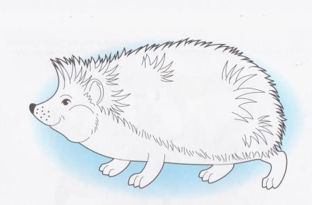 Ход работы: ребенок рисует большой овал (будущий ёж), рисует иголочки, тонирует лист голубым (небо) и зеленым (траву).