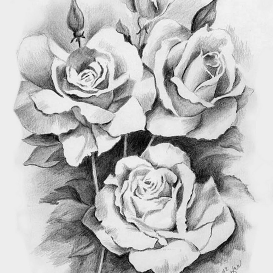- Цветочный рисунок | Эскиз розы карандашом шаг за шагом