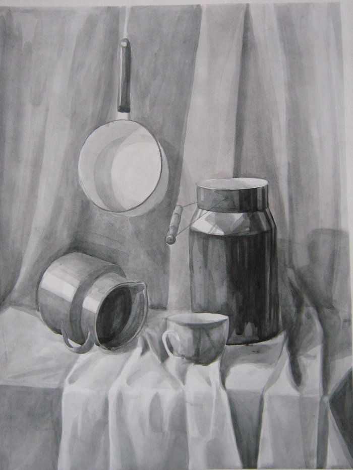 Гризайль — картина, полностью выполненная в оттенках серого, поэтому идеальный переход от рисунка к живописи. Работая только с одним цветом, вы можете сосредоточиться на обучении работе с краской, применяя тональные принципы, необходимые для убедительного представления формы.
