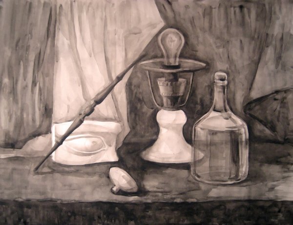 На протяжении веков художники использовали разные оттенки (тона) коричневой или черной туши для создания монохромных изображений на бумаге.Чернила просто будут более или менее разбавлены для достижения необходимых оттенков. Оттенки серой масляной краски использовались для создания монохромных картин в технике, известной как гризайль, от французского слова «gris», означающего серый. В такой работе игра света и тени (светотень) позволяла художнику определить форму и создать картину.