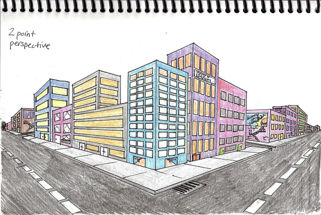 Используйте некоторые из красивых зданий вокруг вас в качестве вдохновения и создайте свой собственный фантастический городской пейзаж с двухточечной перспективой.