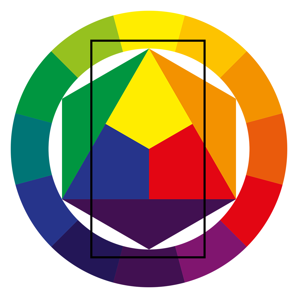 Ее еще называют «цветовой триадой». Подобные сочетания могут быть представлены различными схематическими вариантами. При смежном сочетании (соседние цвета) и при сочетании похожих колеров (через один) образуются гармоничные цветовые союзы. Но классической схемой является применение треугольников (равнобедренный и равносторонний). В таком случае образуются гармоничные цветовые триады (желтый, красный, синий; фиолетовый, зеленый, оранжевый). Поэтому, вписав любую из этих фигур в круг цветовых сочетаний Иттена и вращая, легко определить наиболее гармоничный союз. Как правило, получаются контрастные сочетания. Применить можно также линейные вариации от дополнительных цветов к смежным и так далее.