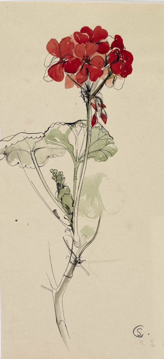 - Антикварные гравюры с геранью и акварелью — Розовые пелагониумы