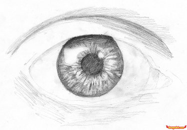 Следующее, что мы делаем, при открытом глазе наносим штрихи на косточку, карандаш держим плоско (то есть по направлению к краю брови). Часто, часто наносим штрихи, эта техника подходит для всех форм глаз.