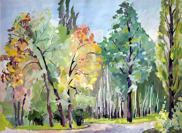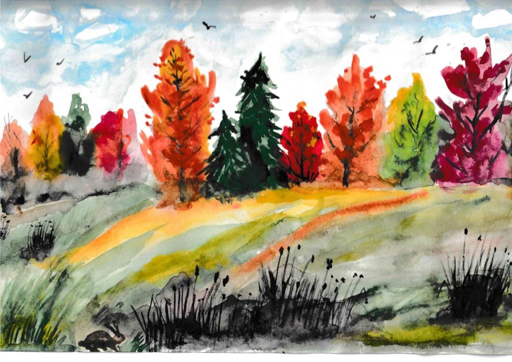 - Осенний лес — рисунок красками. Техника рисования акварелью