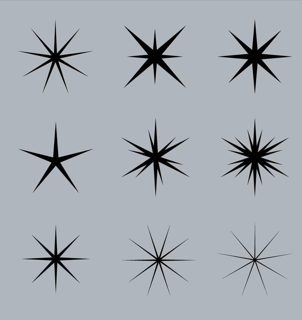 Дублируя и вращая эллипс, мы получим «звёздочку» блика.